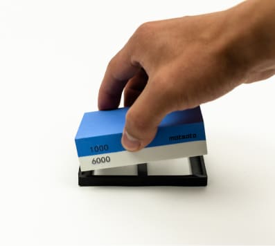 細粒 砥石の目の細かい面は、あらゆる刃先を磨き、なめらかにし、仕上げるのに適しています。