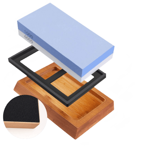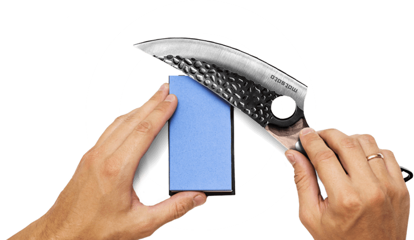 ざらざらした木目 砥石の荒い目の面は、ナイフの刃を元の形に戻すのに最適です。